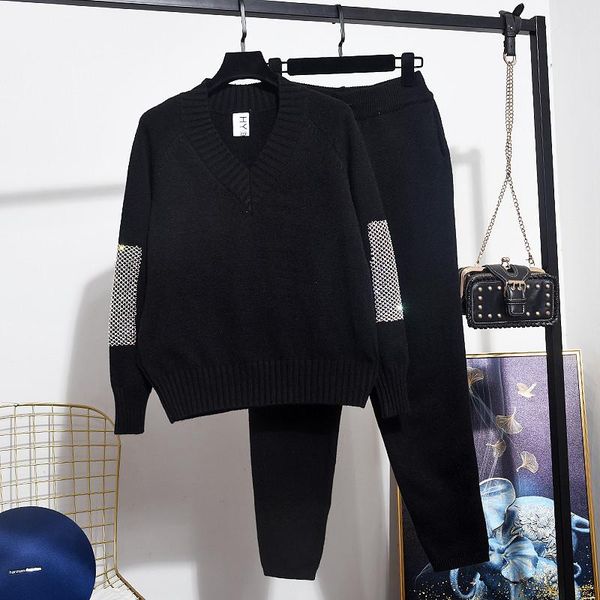 women's two piece pants 2 set women 2021 autumn womens tracksuit long sleeve knitted sweaters+casual small feet winter, White