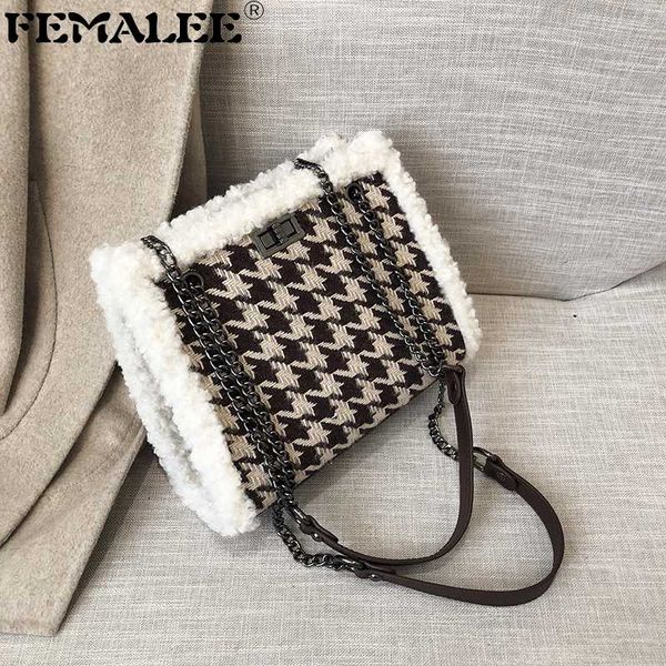 хаундстут chic tweed plaid сумки моды мех border женщин сумки на ремне, зима lady travel коммуникатор bas для женщин