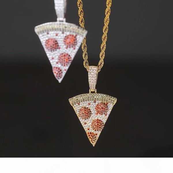 цирконий асфальтовой bling пицца форма подвеска ожерелье для hip hop рэпер jewelry trend brass iced out gold silver
