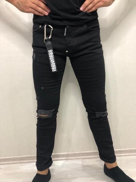 черные джинсы молодой работа брюки оборванного логотип орнамент, Blue