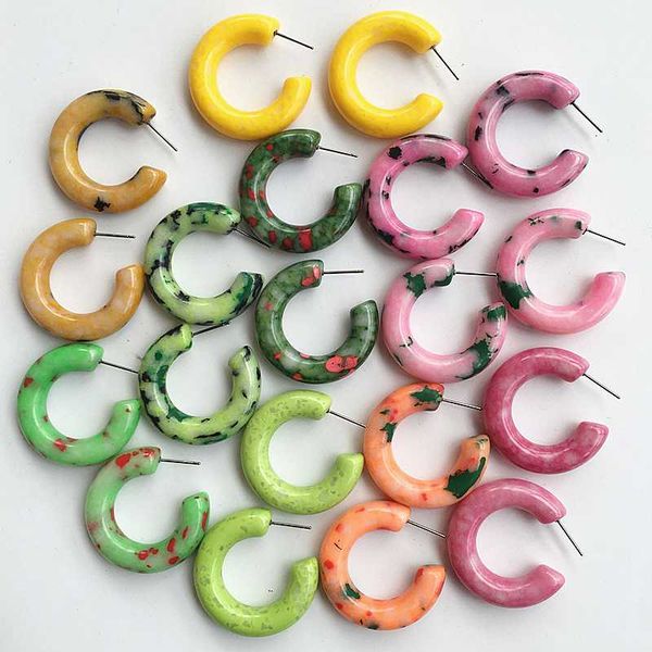 ujbox new synthetic stone earrings multicolor geometric circle yellow green pink hoop earrings factory wholesale, Golden;silver