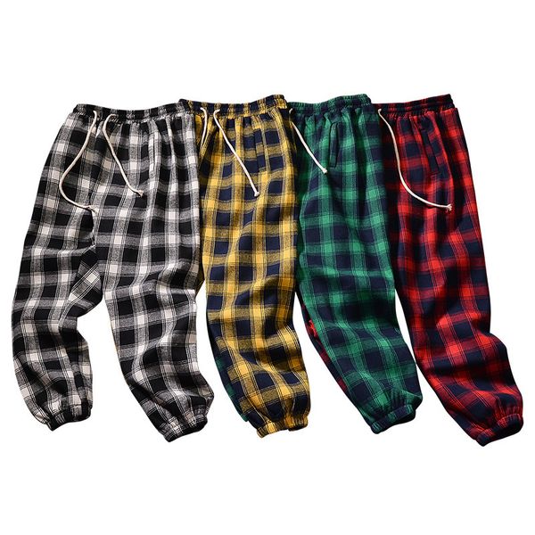 черный и белый плед hip hop трек брюки мужчины желтый голеностопного брюки повседневный harajuku плюс размер свободный pantalon hombre клетч, Black