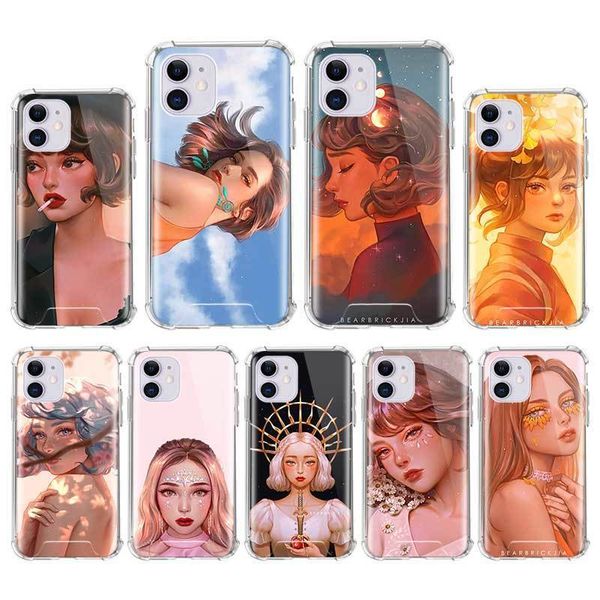 чехол для iphone 12 mini 11 pro max x xs xr 7 8 6 6s plus se 2020 подушка безопасности anti fall cover mobile caso красивая девушка art eest