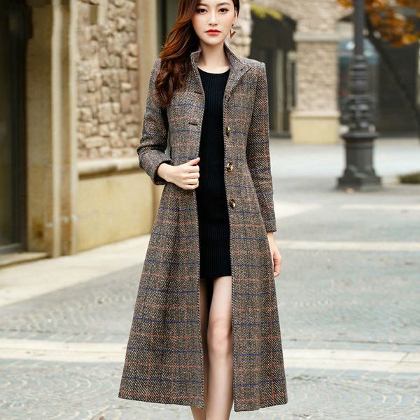 шерстяное пальто женщины высокое качество классические длинные шерстяные пальто 2019 новые шерстяные куртки тренч зимняя верхняя одежда плед, Black