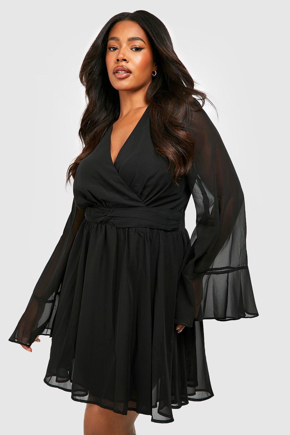 шифоновое платье с раскрешенными рукавами Boohoo, черный