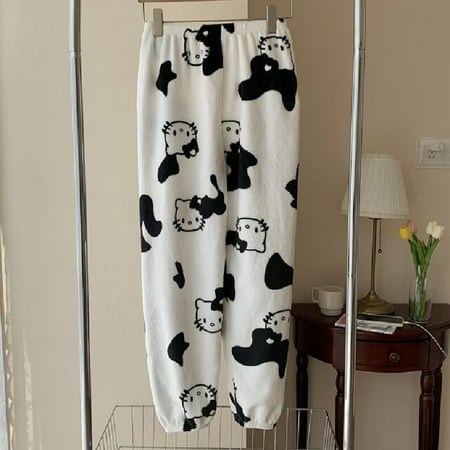 Sanrio Hello Kitty Flannel Pajamas Black Women s Warm Woolen Cartoon Casual Home Pants In Autumn Winter Fashion Trousers