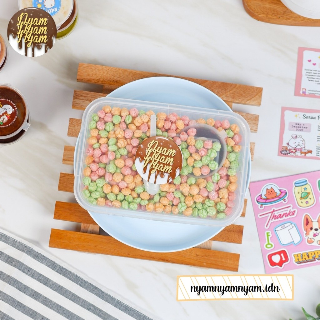 Nyam Nyam rice crispy kualitas bagus bulat bulat kecil mirip dengan yang aseli, BUKAN nyamnyam ukuran besar, tidak bau, rasa gurih dan lezat, tekstur dan rasa mirip dengan nyam nyam asli.