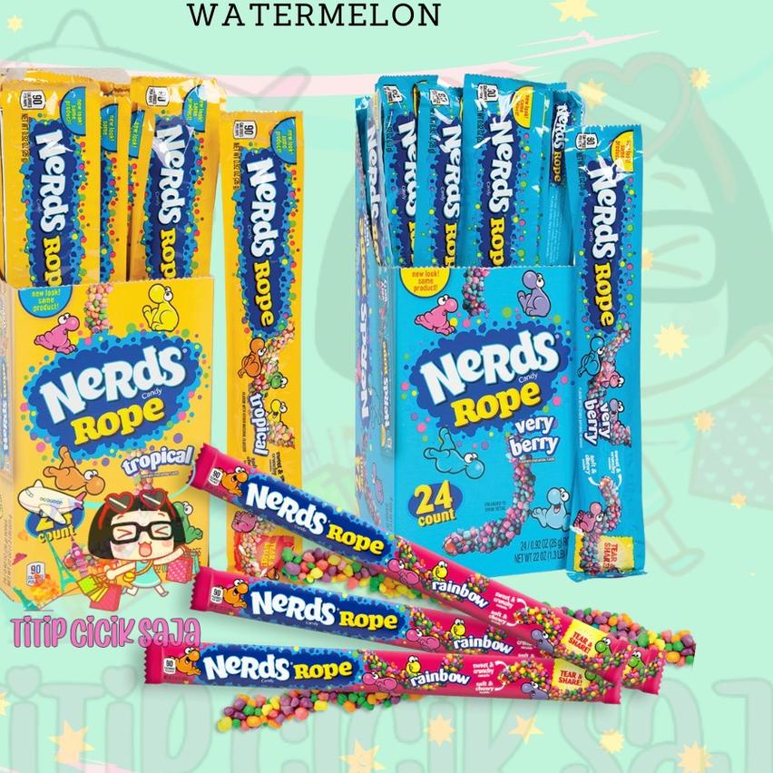 Tiny, tangy, crunchy candy, nerds are delicious little character and peculiarly shaped yet lovably packed with taste. Nerds Rope creates yummy fun by coating a soft, chewy center with confetti-colored characters. With its sense-bending contrast of gummy and crunchy, nerds rope is a zany, color, texture and taste combination best defined as a candy celebration. Those sweet little sparks, all together they swing. A tasty rope, packed with crunchy, sweet Nerds. A candy so tasty, there aren&;t even words. Nerds are delicious little characters and peculiarly shaped yet lovably packed with taste.