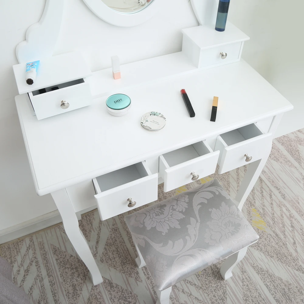 【Сша готов запас 】FCH одно зеркало 5 ящиков туалетный столик белый использовать в спальне