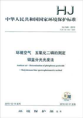 中华人民共和国国家环境保护标准(HJ 546-2015):环境空气 五氧化二磷的测定 钼蓝分光光度法