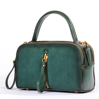 克路驰(CLUCI)时尚女包包牛皮单肩斜挎迷你小包百搭复古手提包CW1171162墨绿色