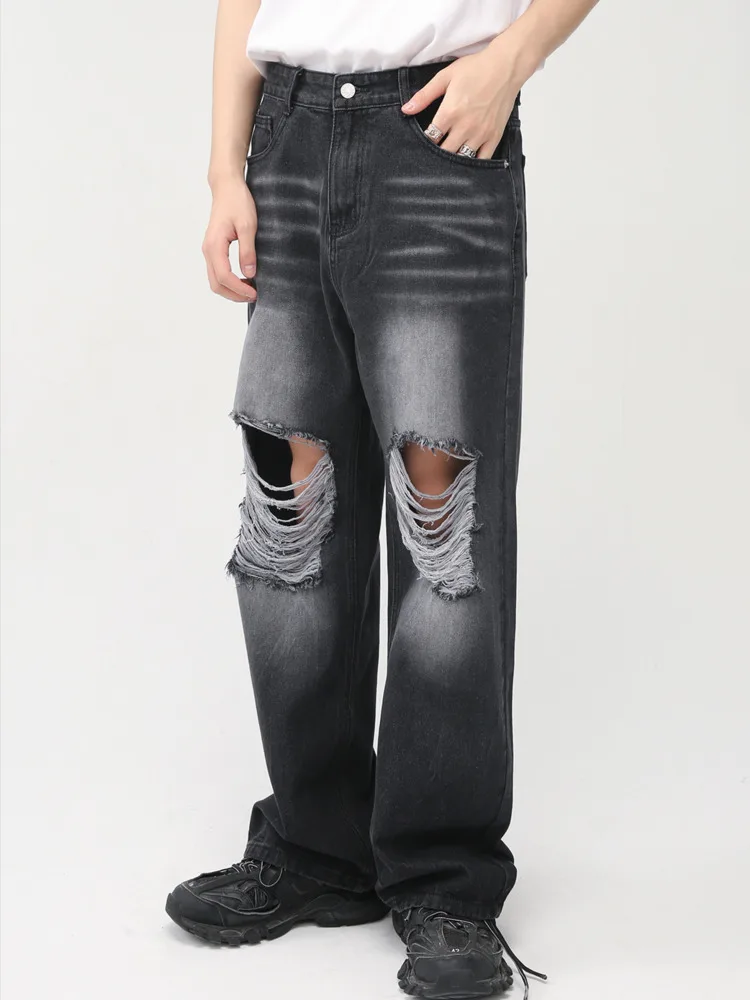 SYUHGFA Men Clothing 2022 Autumn Personality Hole Design Korean Streetwear Fashion Loose Jeans Casual Denim Trousers For Male
