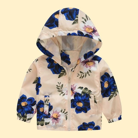 cllios Toddler Kids Baby Boys Girls Fashion Cute Cartoon Flowers Car Pattern Windproof Jacket Hooded Coat