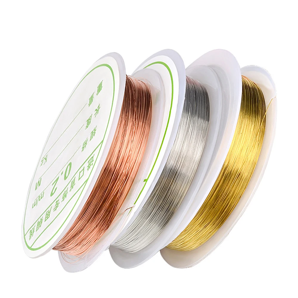 0,2 мм медная проволока для дизайна ногтей, декоративная линия 16 м/рулон, золотой, серебряный, розовый, золотой сплав, заклепки, ювелирные изде...