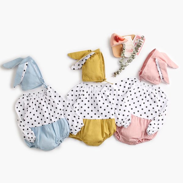 0-3yrs born baby girls wave point long sleeve clothes rompers and hat spring autumn toddler jumpsuits 210429, Blue