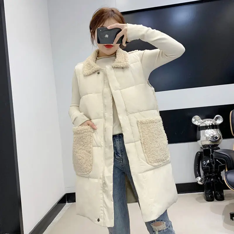 2023 Women Autumn Winter Long Casual Thicken Waistcoat Cotton Hot Selling Elegant Sleeveless Jacket Coat Vest for Female H68