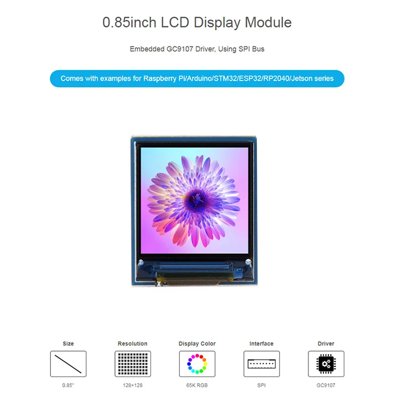 0.85 Inch Display Module 240x280 Rounded Corners IPS Panel LCD Embedded GC9107 Driver SPI Interface with Example for Arduino