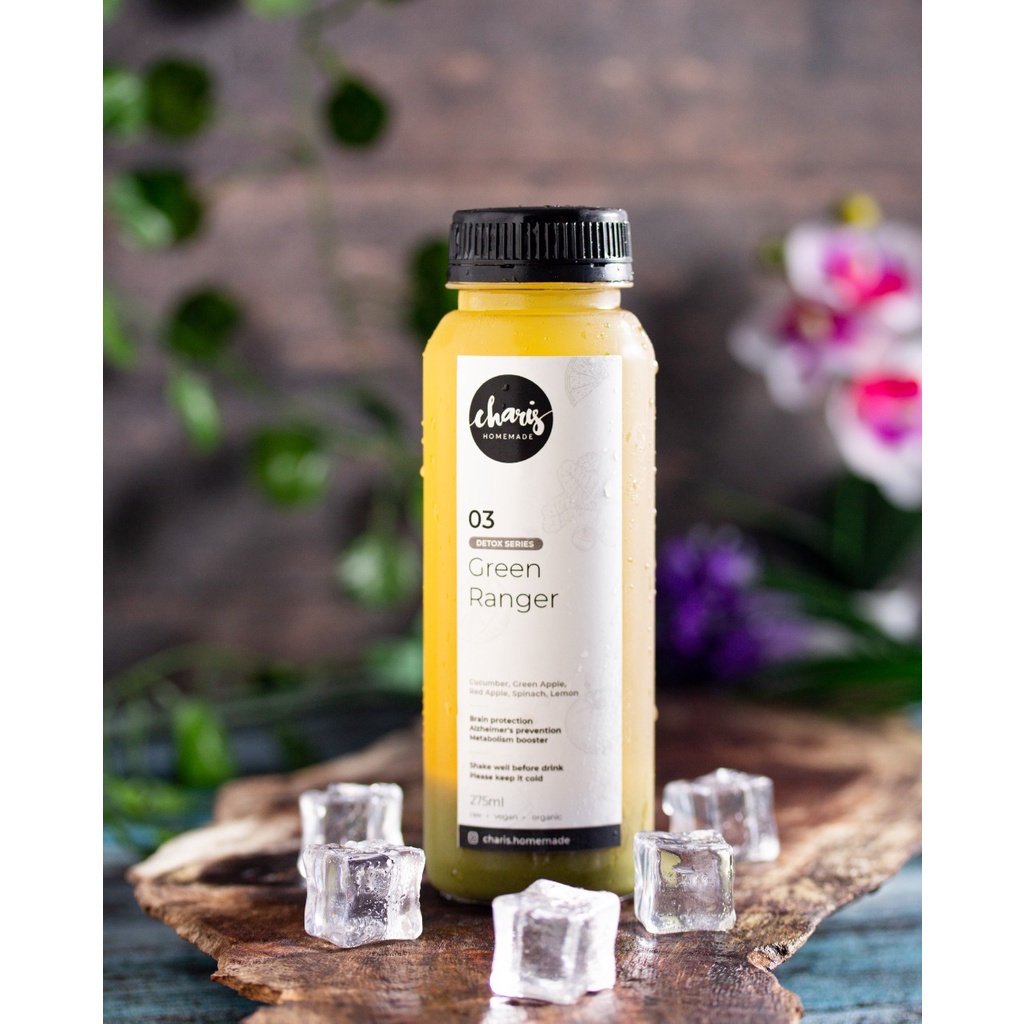 Cold pressed juice dengan menggunakan Timun, apel hijau, apel merah, Bayam dan Lemon, rasanya menyegarkan dan sehat, tidak menggunakan gula dan bahan persevative lainnya