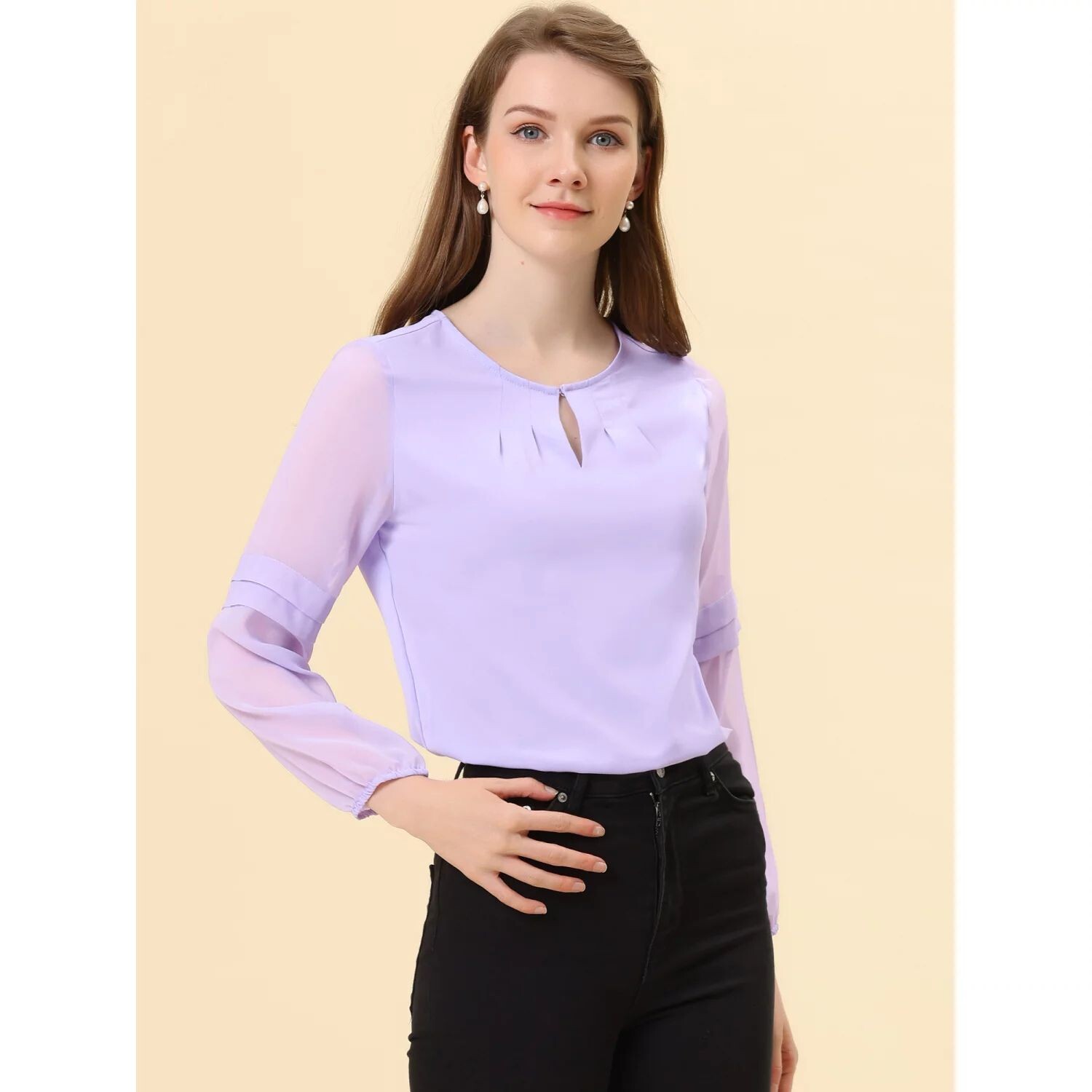 Женские рабочие топы, шифоновая рубашка, полупрозрачная элегантная блузка с вырезом под замочную скважину ALLEGRA K