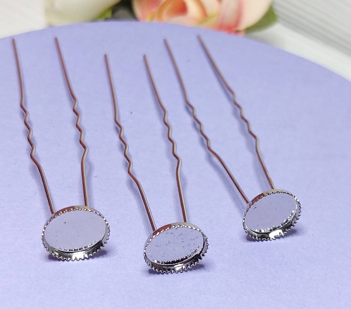 (1шт) Шпилька для волос 70мм, под кабошон Цвет - Серебро