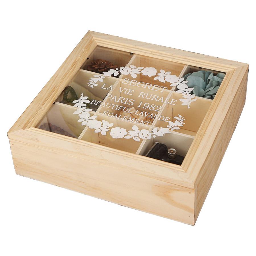 1шт деревянная шкатулка из сосны с 9 отделениями квадратная акриловая с отделениями бисерная бижутерия разная настольная органайзер с крышкой