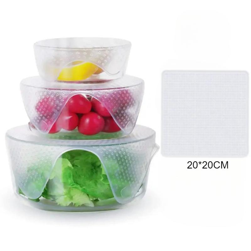 1шт силиконовые многоразовые крышки для хранения продуктов питания, пластиковая пленка, крышка от брызг в микроволновой печи, можно мыть в посудомоечной машине, кухонные принадлежности 20*20cm прозрачный