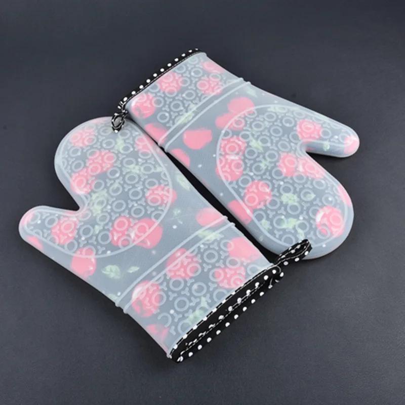1шт термостойкие силиконовые кухонные перчатки, прихватки для духовки, более толстые силиконовые перчатки для приготовления пищи, перчатки для микроволновой печи, кухонные перчатки с принтом