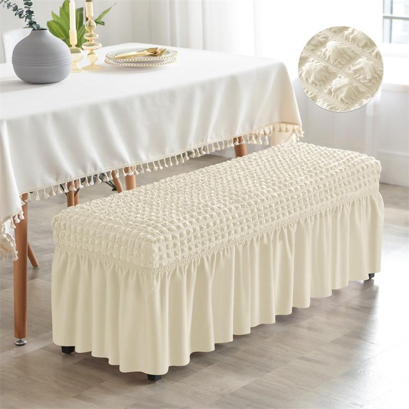1шт эластичный чехол для скамейки из жатой ткани с юбкой, противоскользящий чехол для обеденного сиденья, эластичный чехол для стула пианино, защитный чехол для сиденья в спальне