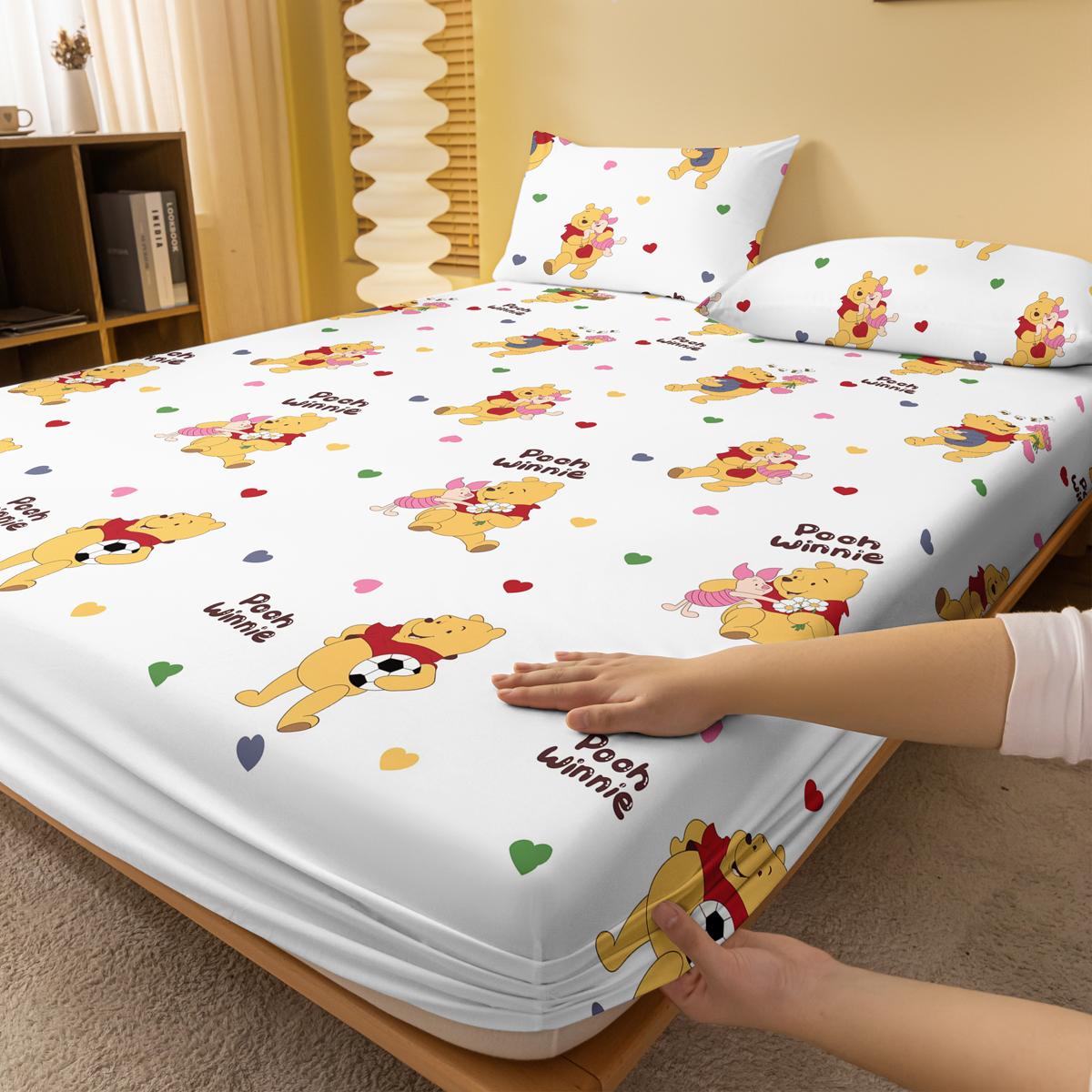 1 Мультяшная Милая Винни и Пятачок Цифровая Печать Матовая Простыня на Резинке, Принт для Спальни Покрывало на Кровать, Постельное Белье(Нет наволочки) 71x132cm