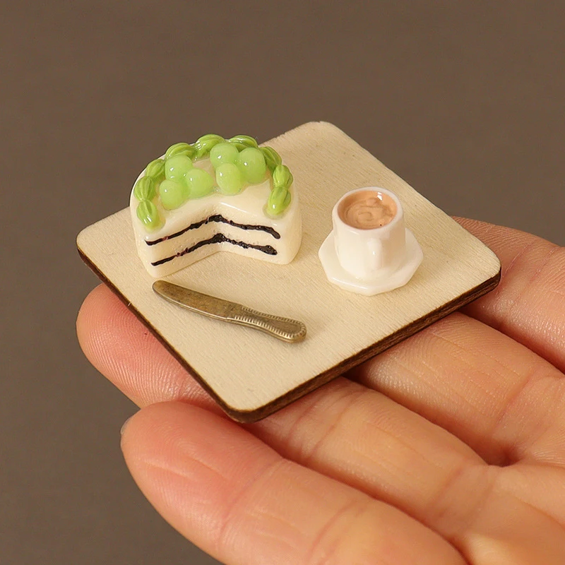 1 Набор 1:12 миниатюрный кукольный домик для торта, десерт «сделай сам», поднос с вилкой, модель еды, кукольный домик, кухня, миниатюрная декоративная игрушка для еды