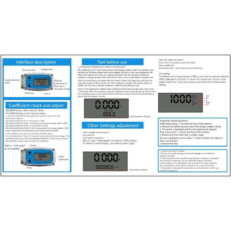 1 дюйм/2 дюйма/2,5 дюйма/3 дюйма электронная турбина-расходомер с батарейным питанием (не входит в комплект)