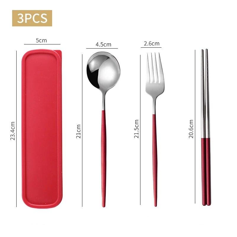 1 комплект бытовой портативной посуды из нержавеющей стали, палочки для еды, ложки, вилки, набор из трех предметов с коробкой