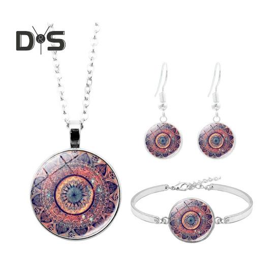 1 комплект женских украшений с цветочным принтом, стеклянный кулон в винтажном этническом стиле, серьги для выпускного вечера, ожерелье, браслет, идеальный рождественский подарок I