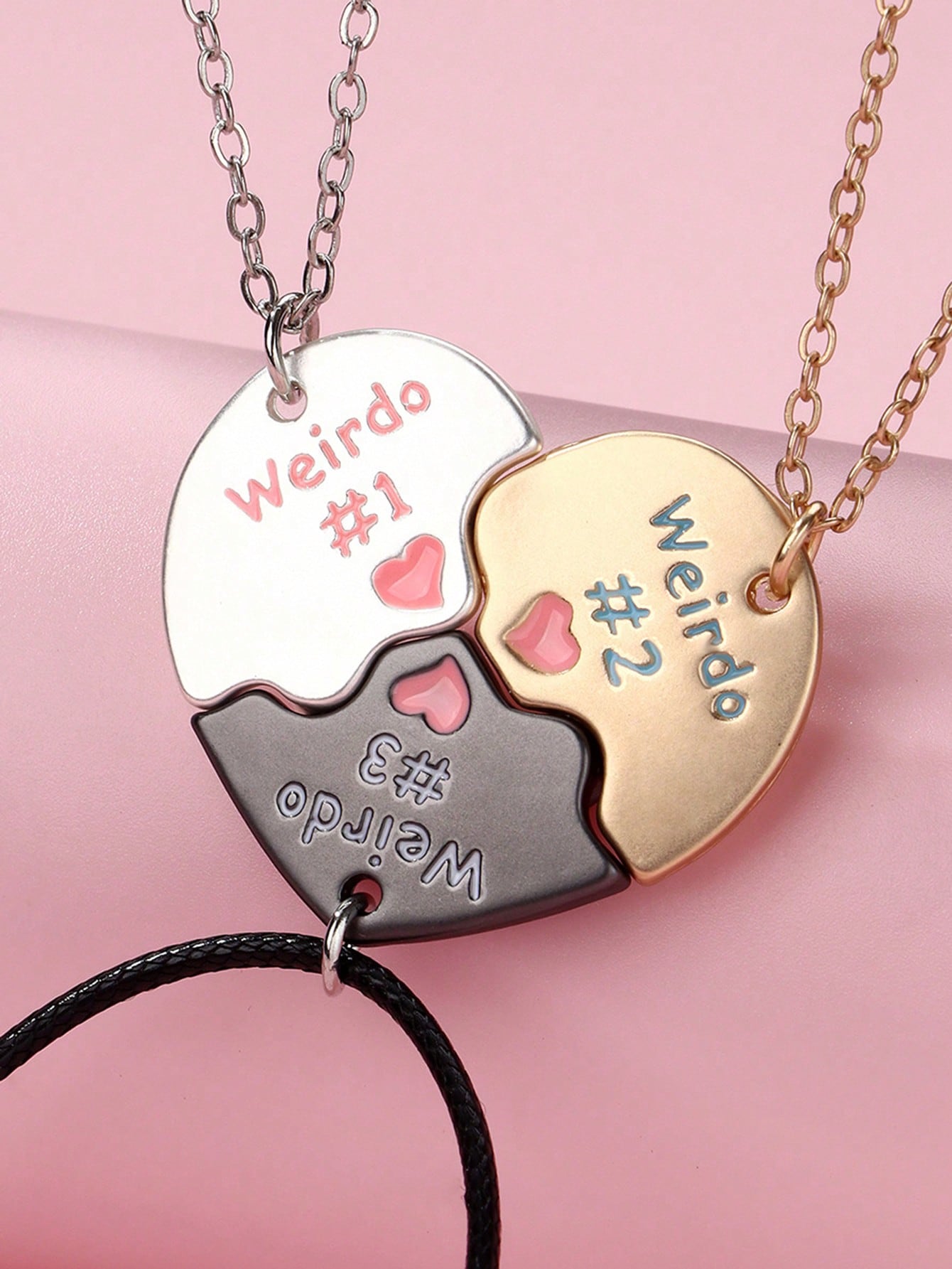 1 комплект из трех женских подвесок из сплава, соединенныхв форме сердца, женское модное ожерелье, подарок для друзей one-size разноцветный