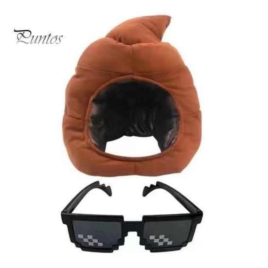 1 комплект, мультяшная шапка с изображением какашек, с ожерельем, солнцезащитные очки, зимняя теплая необычная кепка для повседневной носки, подарочный розыгрыш, реквизит для фотобудки A