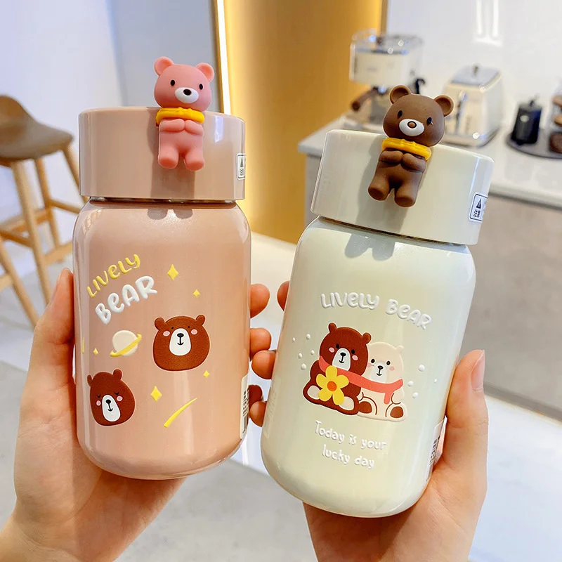 Персонализированная мультяшная Трехмерная медведь вакуумная фляжка из нержавеющей стали с ситечком для слива чая чашка для пары Питьевая ...