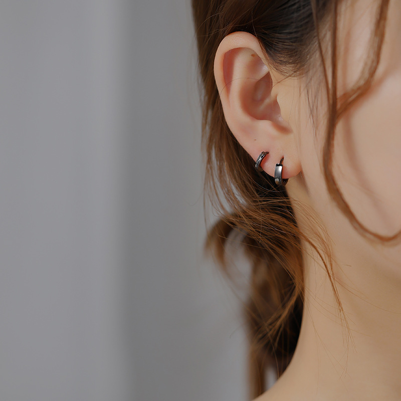 Hoop & Huggie 925 Sterling Silver Earring Simple Versatile Black Epoxy Wide Face Ear Ring Bone Buckle Trend Wild Girl Boy Jewelry