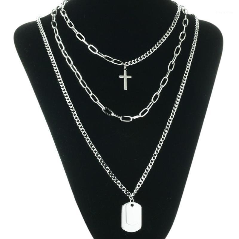 Cross Pendant Necklaces Layered Stainless Steel Necklace Square tag Neckless Style Chains Men Long punk1
