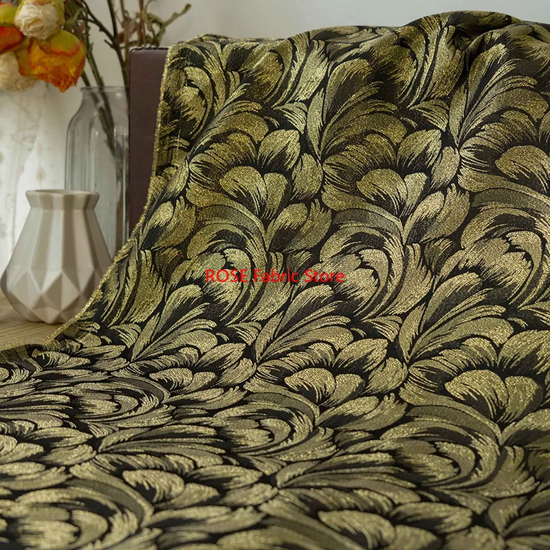 1-метровая ретро-черная, золотая, с рисунком перьев, жаккардовая парчовая ткань, праздничное платье, домашняя занавеска, декоративная швейная ткань