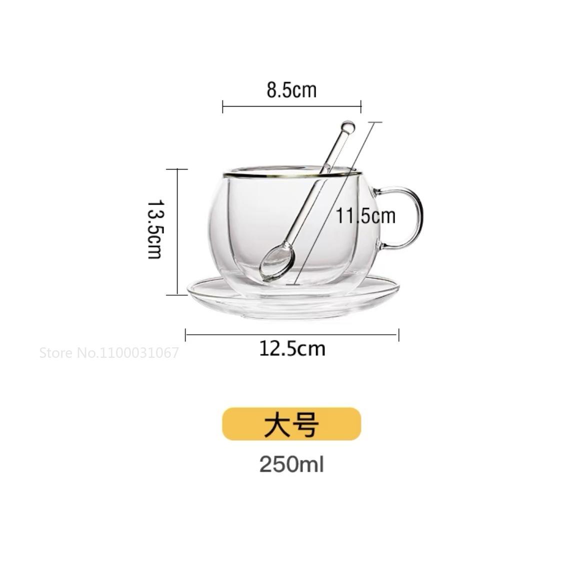 1 набор стеклянных стаканов с двойными стенками и ручкой, креативные прозрачные антиожоговые термоизоляционные стаканы для воды, молока, лимонного сока, кофе 200ml