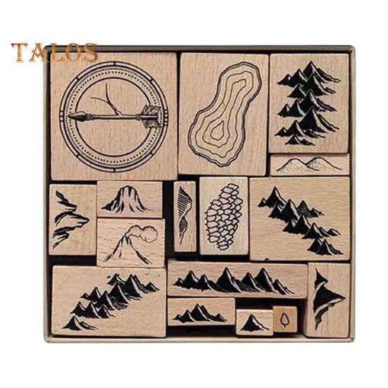 1 набор штампов ручной работы с 16 деревянными резиновыми штампами для самостоятельного изготовления декоративных штампов в виде гор, рек, лесов, зданий B