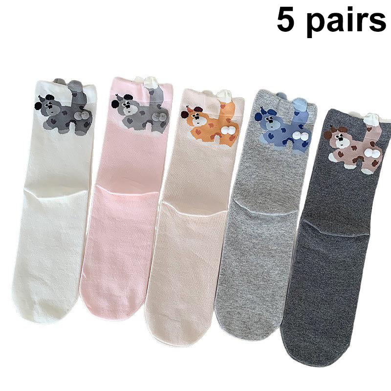 1 пара Мультяшные Принты, Приятные к коже, Теплые Носки с Яйцом и Собакой, Удобные, Красочные, Легкие, Дышащие, Повседневные, Милые 5PCS