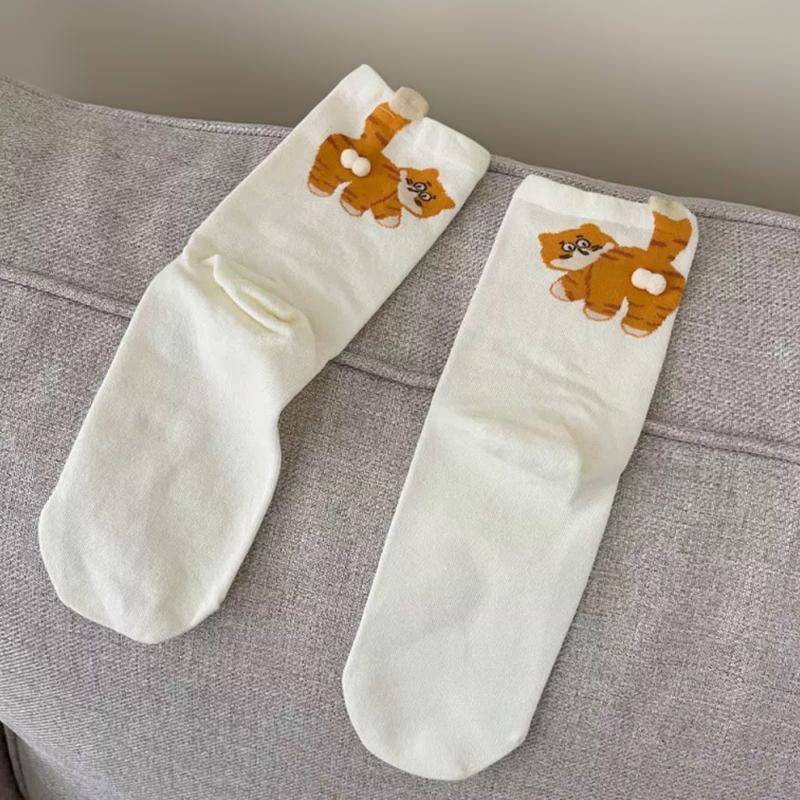 1 пара Носки с принтом, приятные к коже, красочные, дышащие, с рисунком кота и яйца, теплые, на каждый день, милые, многоэлементные, удобные, мультяшные, легкие белый