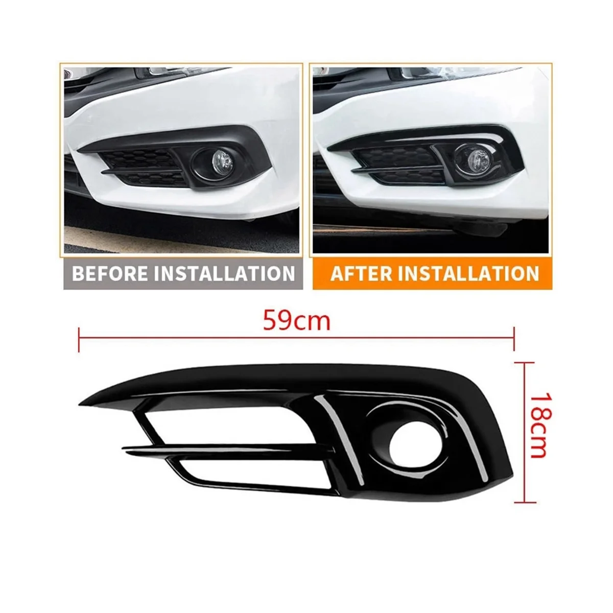1 пара, декоративные глянцевые черные ленты для переднего бампера Honda Civic 10-2016