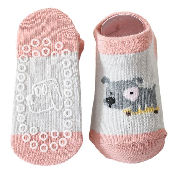 1 пара детских носков, милые мягкие летние носки с мультяшными животными для малышей с нескользящим горошком для детей S серый