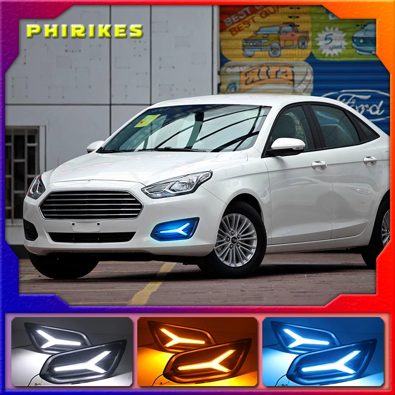 1 пара для Ford escort 2015-2018 дневные ходовые огни светильник DRL светодиодный Противотуманные фары крышка с желтым указатели поворота триколор функции