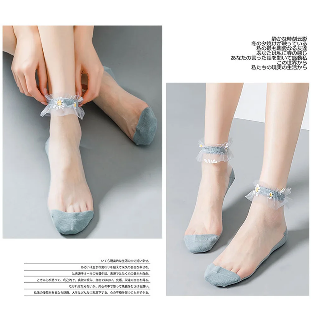 1 пара, дышащие ультратонкие летние женские носки с прозрачными кружевами
