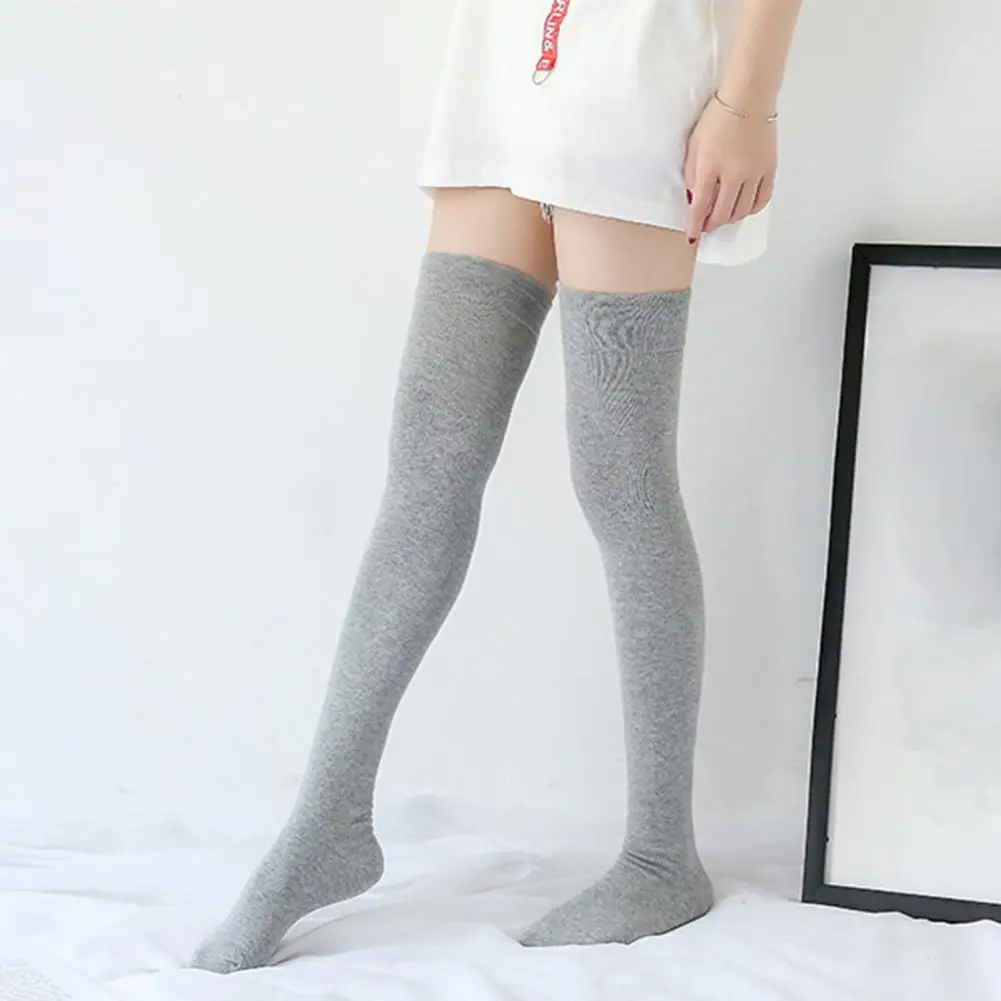 1 пара, женские чулки до бедра, Нескользящие однотонные силиконовые Чулки, сезон осень-зима, хорошо тянущиеся длинные чулки для школы