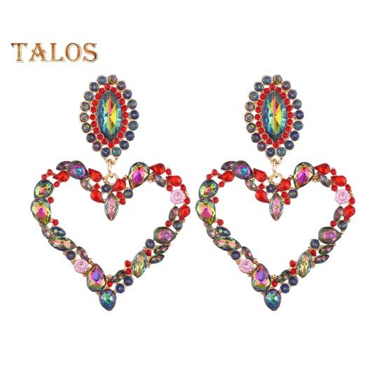 1 пара женских висячих сережек с большим полым сердцем, цветной декор из страз, преувеличенные серьги для вечеринок, клубов, свиданий, висячие серьги, украшения для ушей разноцветный