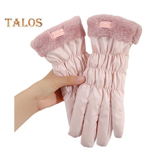 1 пара женских осенне-зимних перчаток, толстые плюшевые водонепроницаемые ветрозащитные перчатки с пятью пальцами, декорированные бантом, толстые нескользящие теплые перчатки для езды на велосипеде розовый